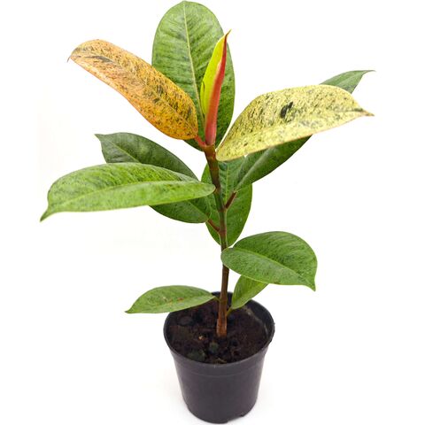 Живое растение в горшке Ficus elastica Shivereana Moonshine (Фикус эластика Шивериана Муншайн) в горшке с грунтом.